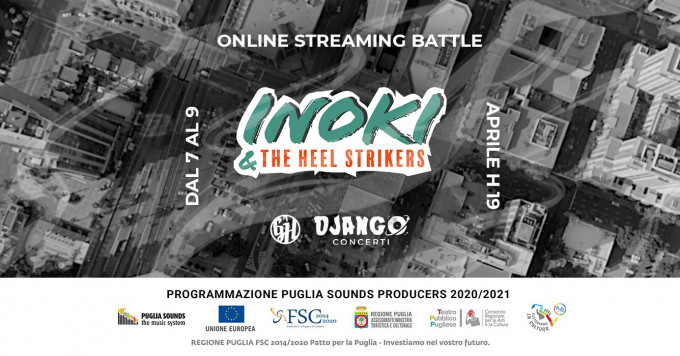 Si chiama The Heel Strikers, l'evento gratuito in streaming che sarà trasmesso in diretta dalla Casa delle Arti di Conversano (BA) il 7, 8 e 9 aprile a partire dalle ore 19 in crossposting sulle pagine facebook di tutti i partner e gli artisti coinvolti e su canale YouTube di Django Concerti.