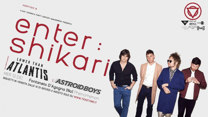 Dopo averli visti all'Alcatraz di Milano lo scorso 3 Maggio nel tour del decimo anniversario di “Take To The Skies”, ENTER SHIKARI tornano in Italia il prossimo Dicembre. Nuovo album in preparazione per i ragazzi inglesi, che amano contminare il punk e l'hardcore di musica elettronica ad altissimi volumi e al 100% dell'energia! Due special guest: Lower Than Atlantis e Astroid Boys.